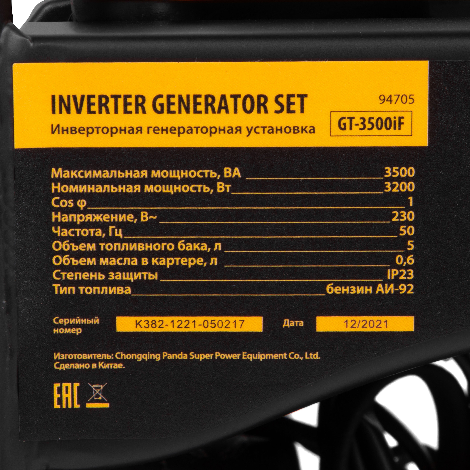 Бензиновый генератор DENZEL GT-3500iF 94705: характеристики